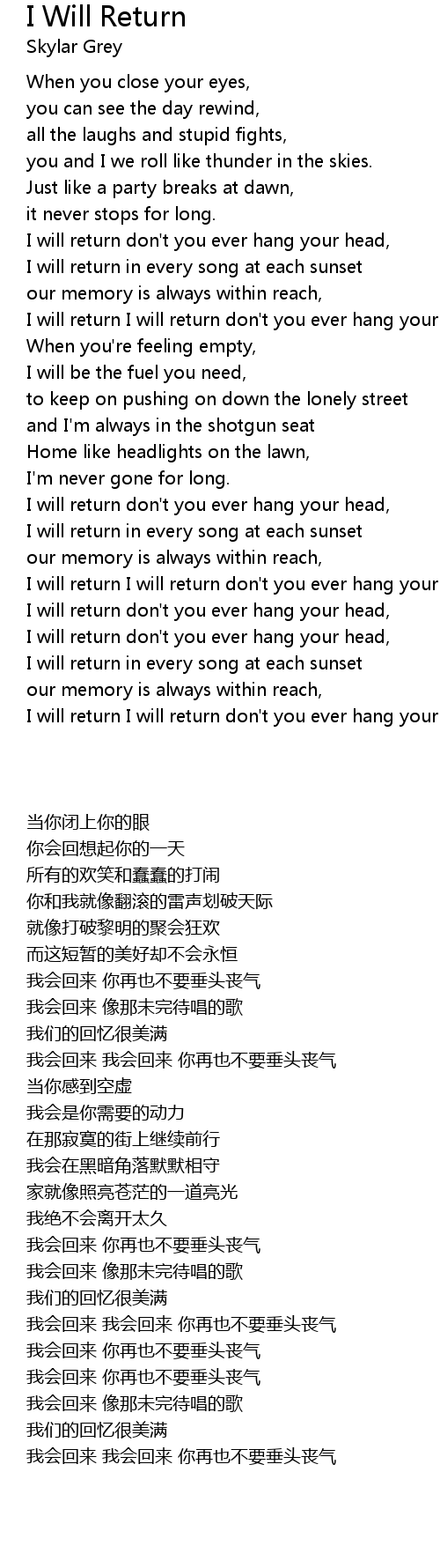 I will return I will return don't you ever hang your head. |