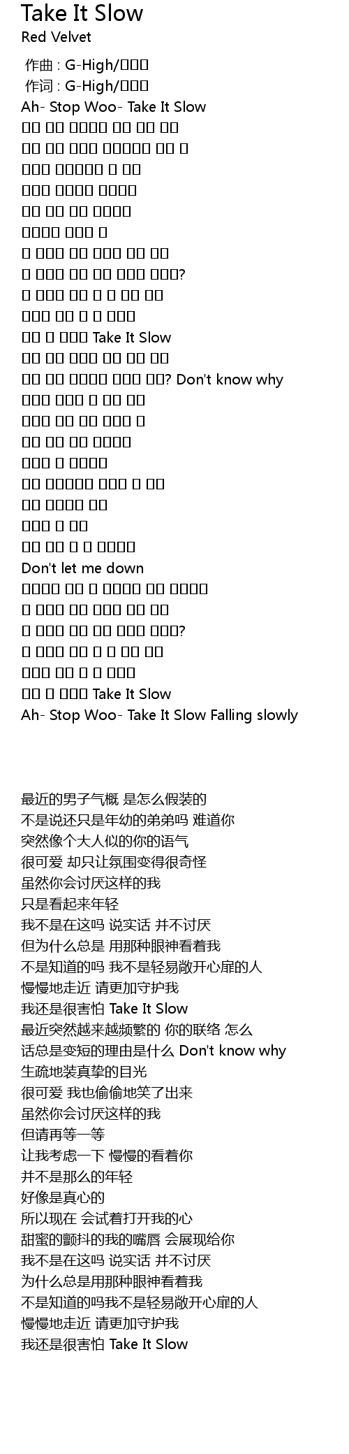 | [00:11.480] | Ah Stop Woo Take It Slow |