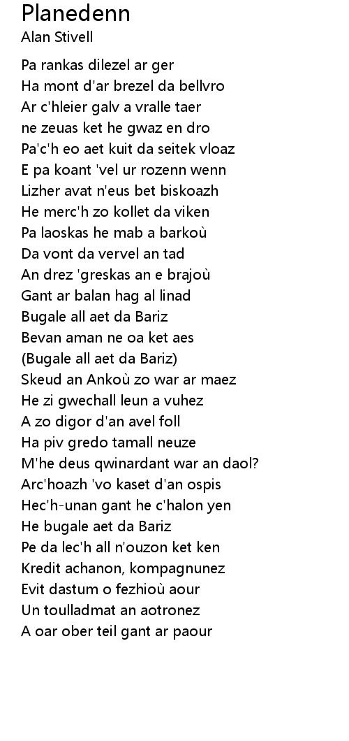 | Ar c'hleier galv a vralle taer | |