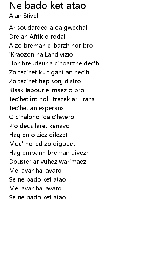 | P'o deus laret kenavo | |