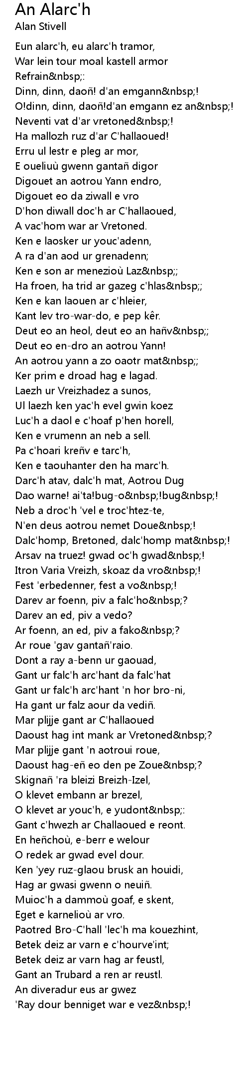 | Gant ur falc' h arc' hant ' n hor broni, | |