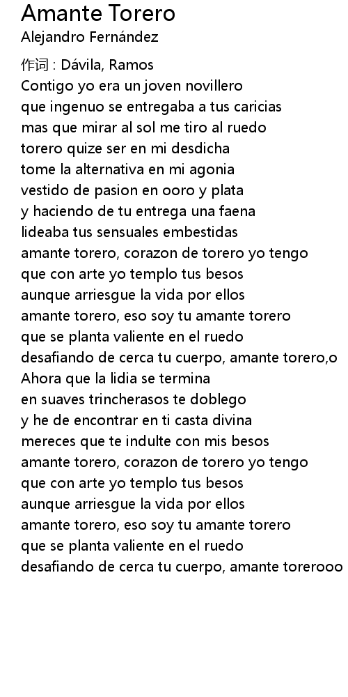 | amante torero, eso soy tu amante torero | |