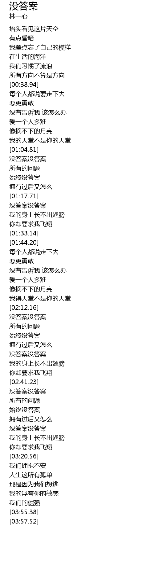 | [02:24.94] | 没答案没答案 |