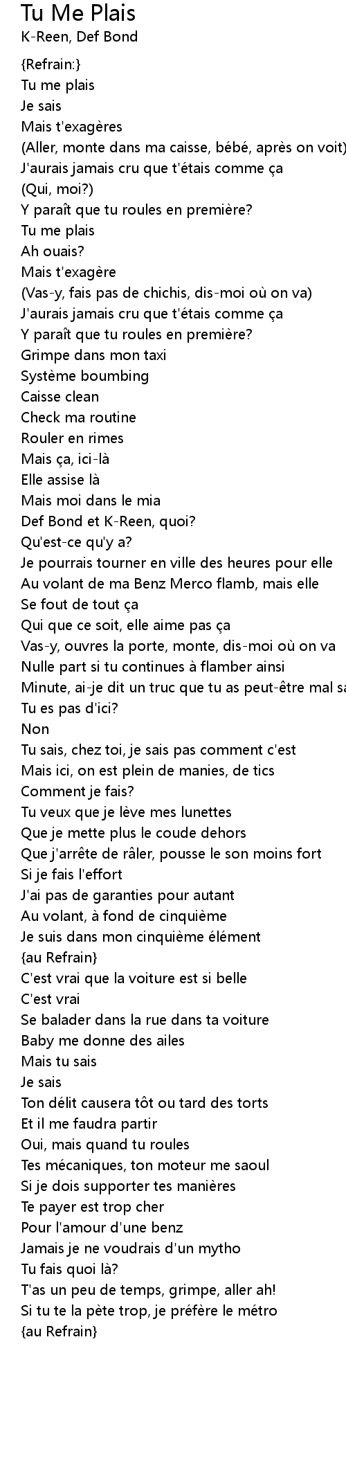 | Que j' arr te de r ler, pousse le son moins fort | |