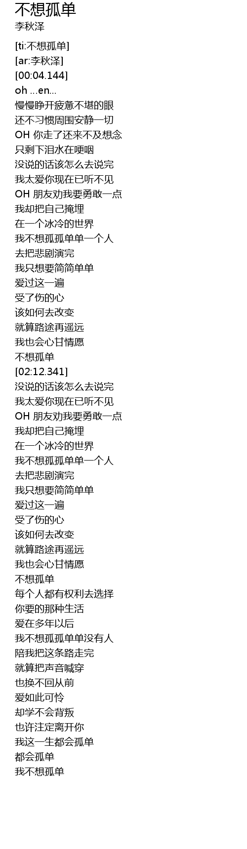 | [02:51.804] | 我不想孤孤单单一个人 |
