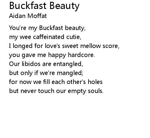 | [00:04.59] | You're my Buckfast beauty, |