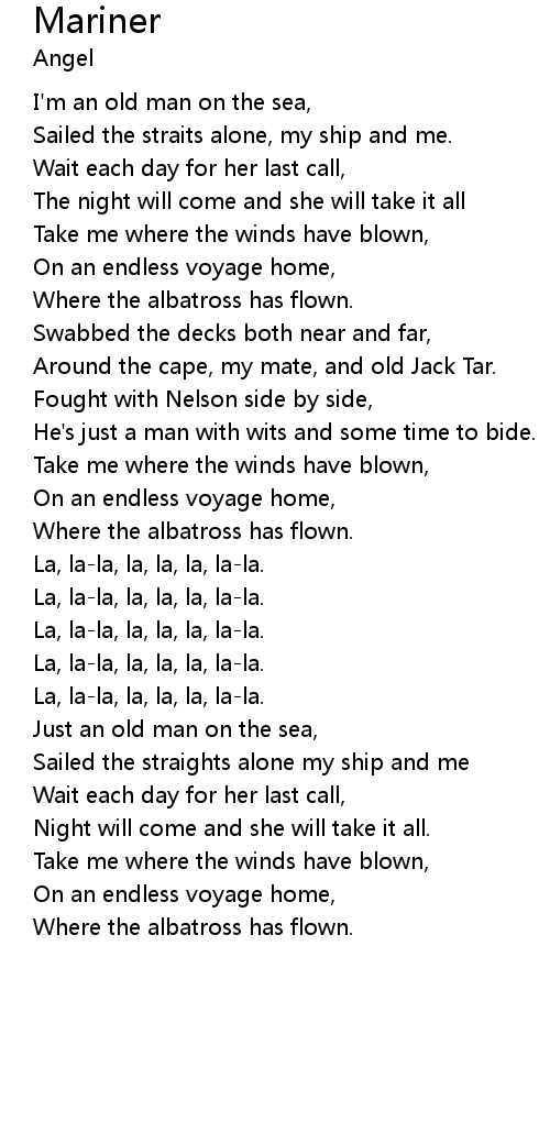 | I'm an old man on the sea, | |