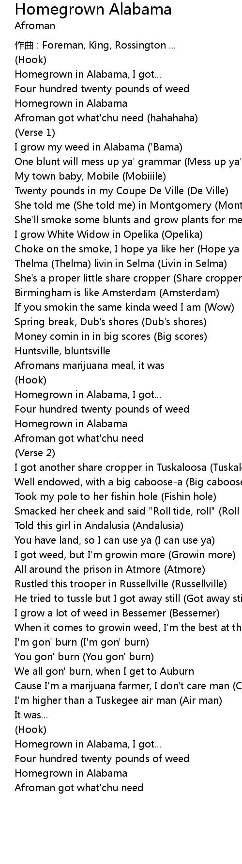 | Homegrown in Alabama, I got... | |