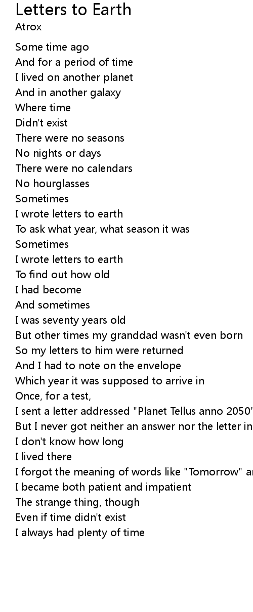| I wrote letters to earth | |