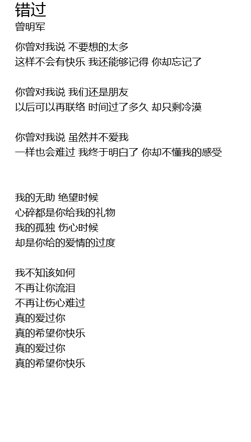 | 这样不会有快乐 我还能够记得 你却忘记了 | |