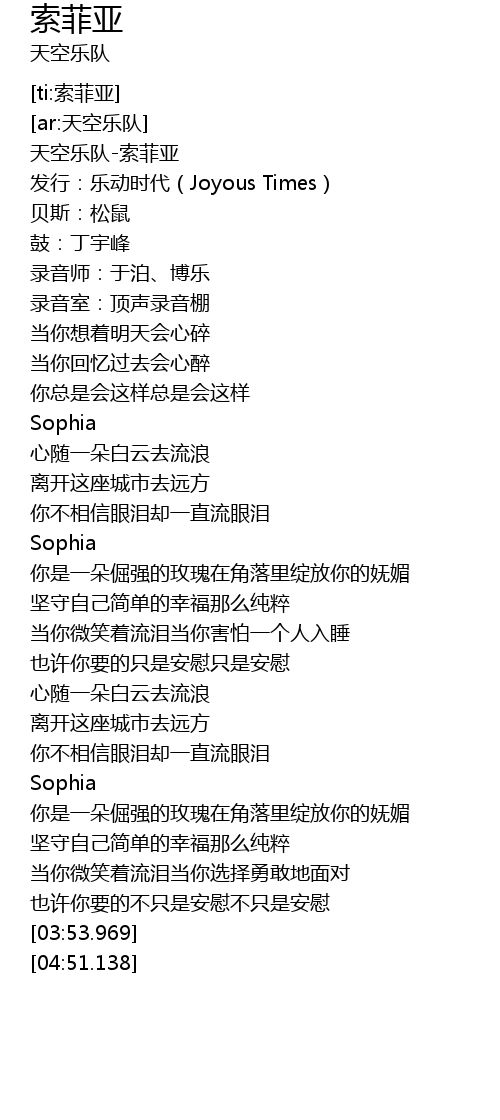 | [00:00.426] | tiān kōng yuè duì suǒ fēi yà |