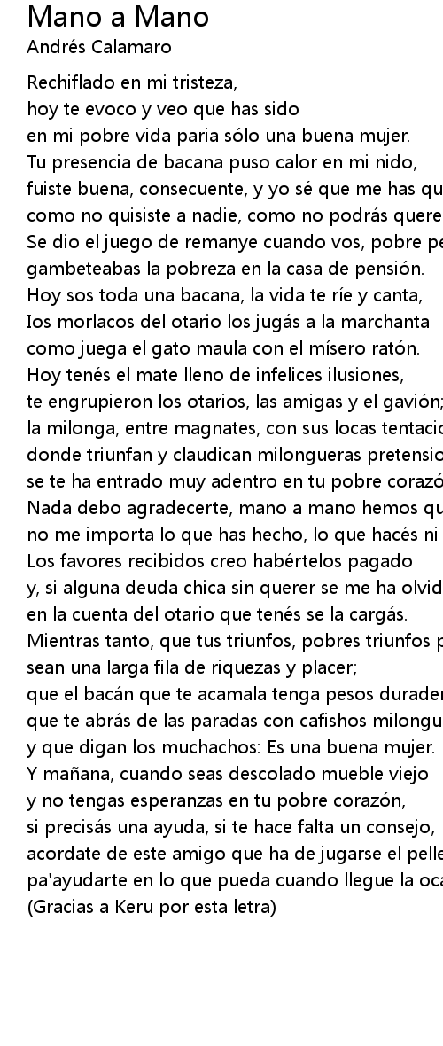 | Nada debo agradecerte, mano a mano hemos quedado | |