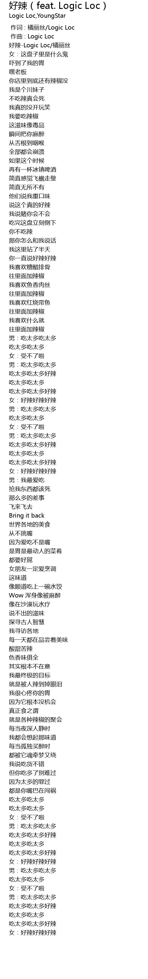 | [00:00.85] | 好辣-Logic Loc/橘丽丝 |