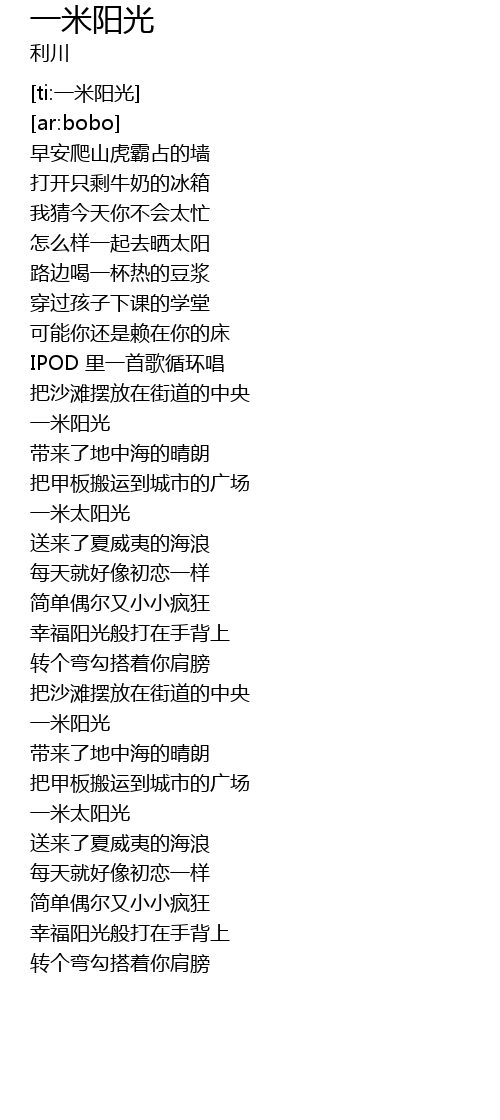 | [01:47.55] | yī mǐ tài yáng guāng |