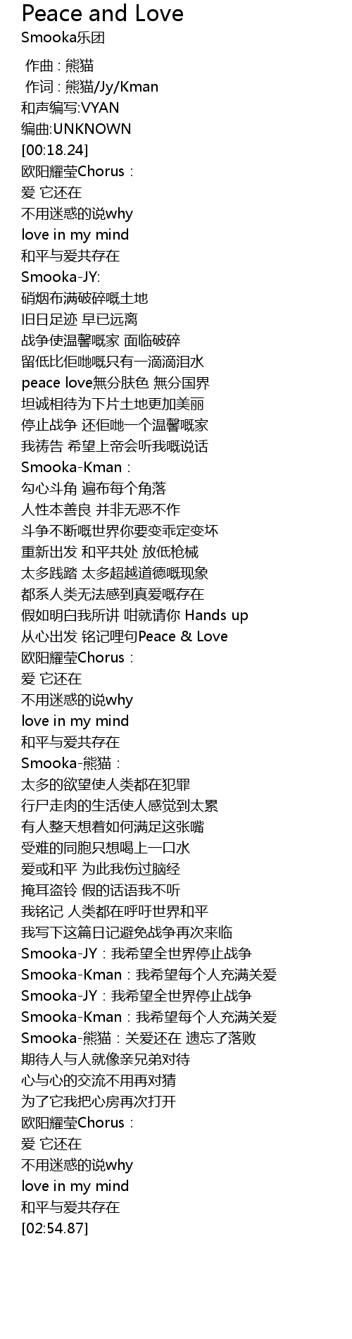 | [00:55.19] | peace love無分肤色 無分国界 |