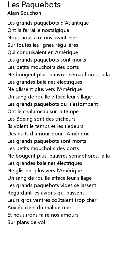 | Ne bougent plus, pauvres sémaphores, la la | |