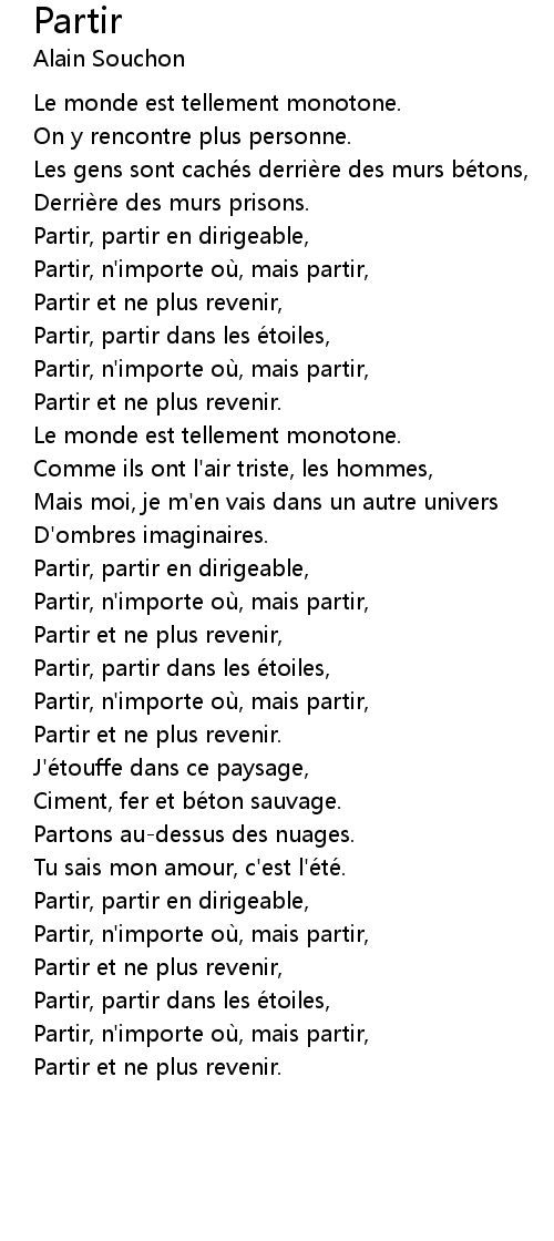 | Song | Partir |