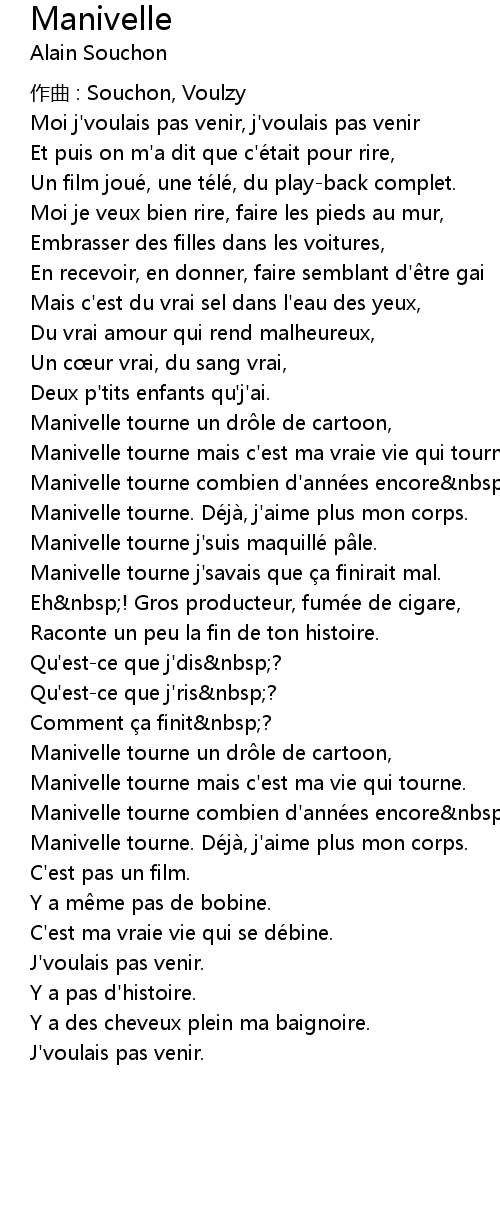 | Manivelle tourne mais c'est ma vraie vie qui tourne. | |