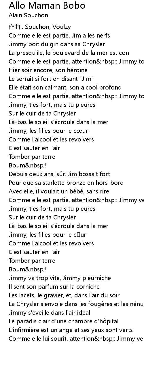 | Comme elle est partie, attention : Jimmy tourne pas rond | |