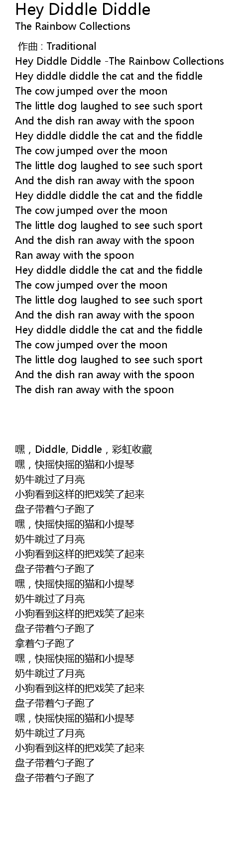 | [01:12.90] | Hey diddle diddle the cat and the fiddle |