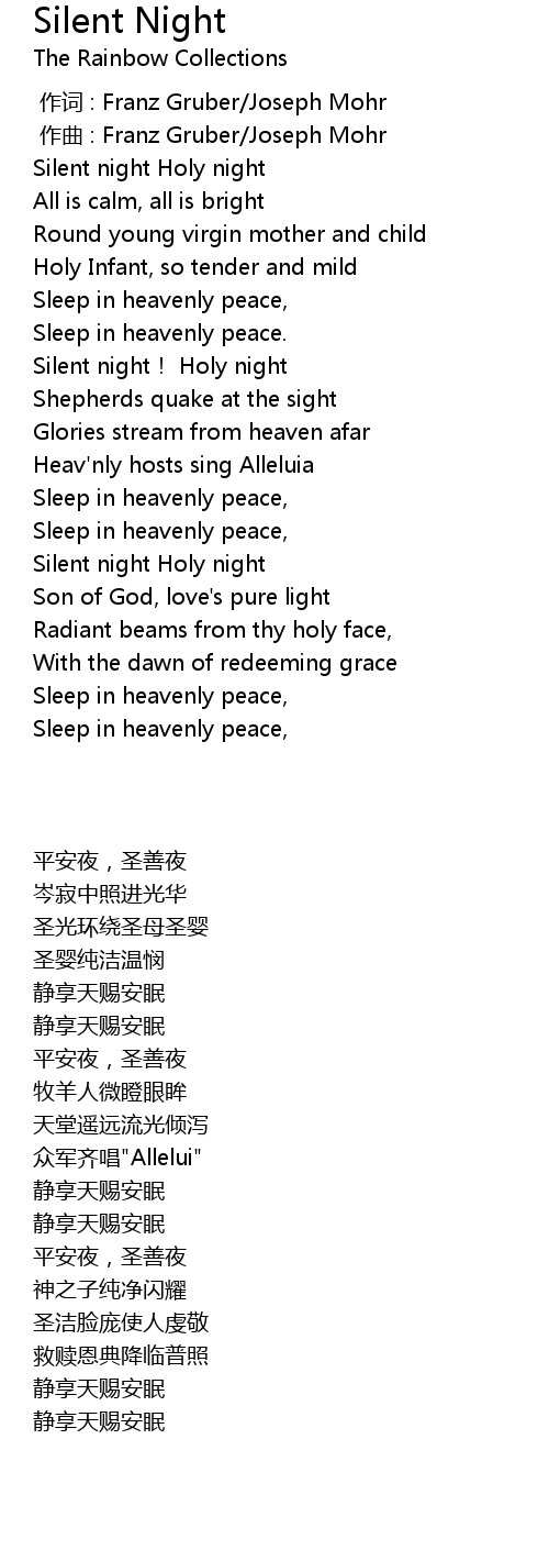 | [00:00.000] | 作词 : Franz Gruber/Joseph Mohr |