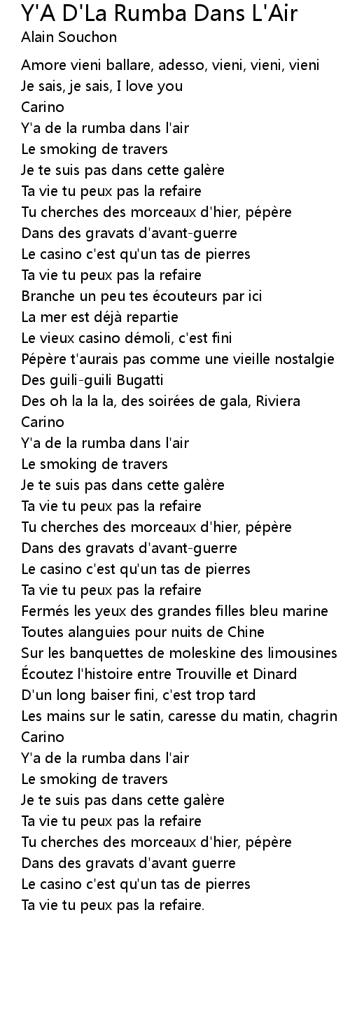 | Song | Y'A D'La Rumba Dans L'Air |