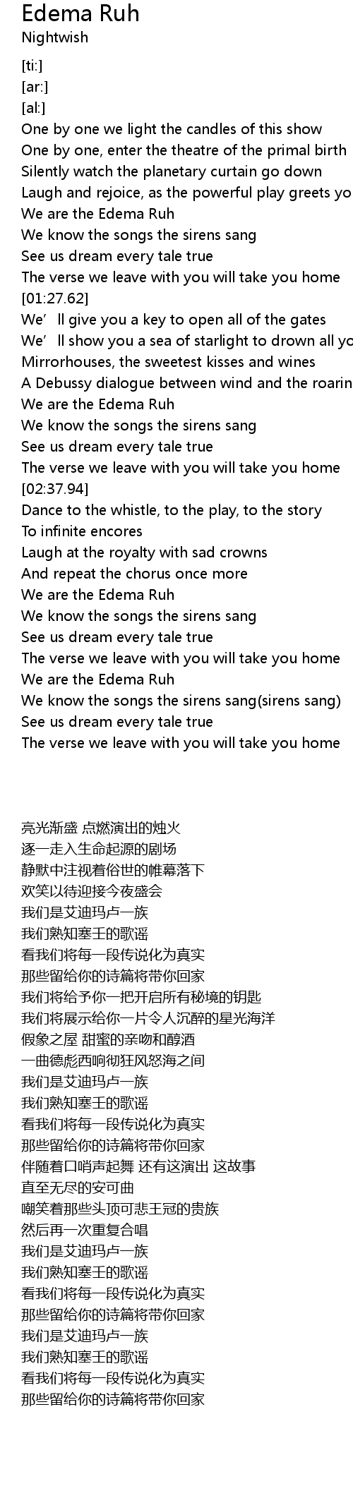 | [04:27.65] | We know the songs the sirens sang sirens sang |