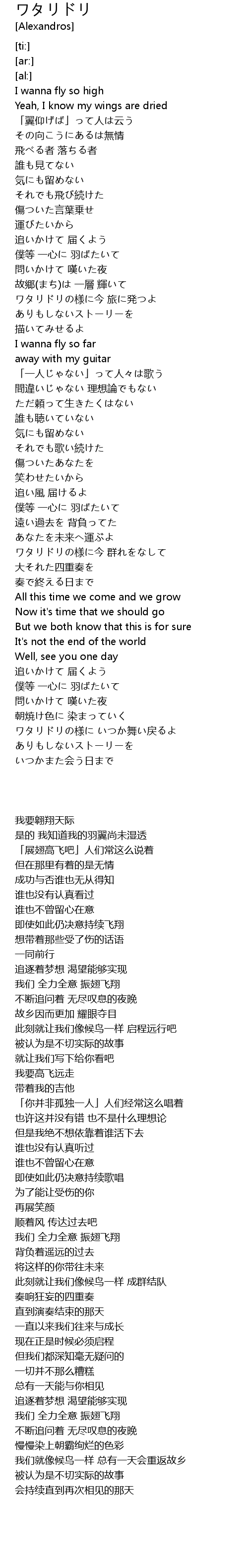 | [03:12.24] | ワタリドリの様に いつか舞い戻るよ |