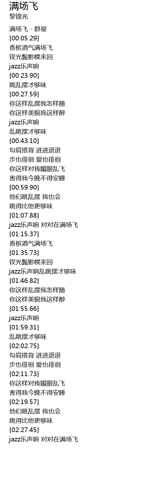 | [02:28.01] | jazz乐声响 对对在满场飞 |
