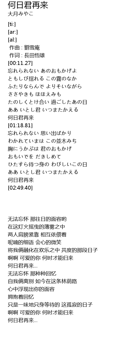 | [02:29.71] | ああ いとし君 いつまたかえる |
