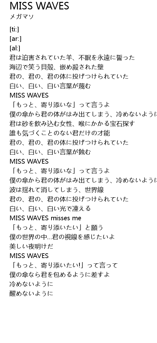 | [03:35.33] | MISS WAVES misses me |