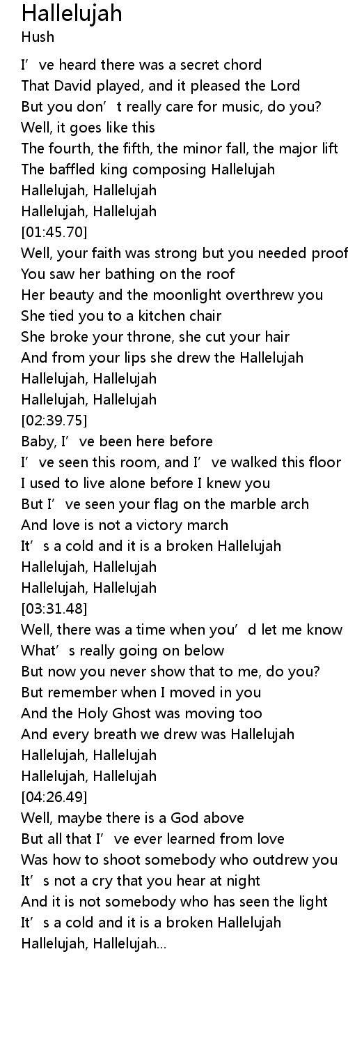 | [04:00.45] | And every breath we drew was Hallelujah |