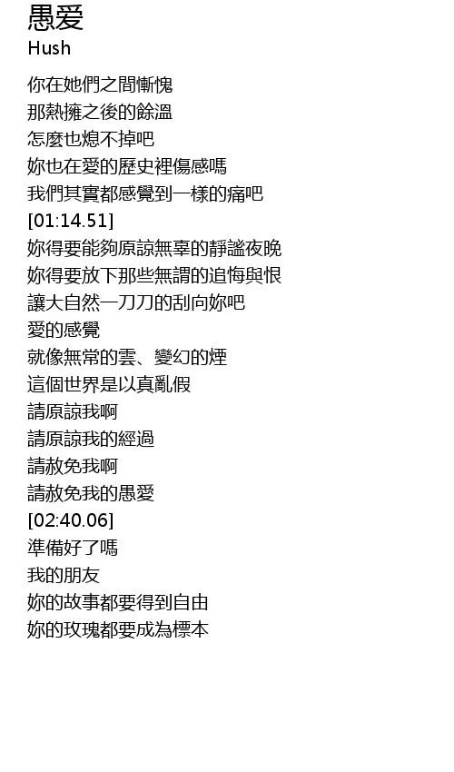 | [02:34.54] | 請赦免我的愚愛 |