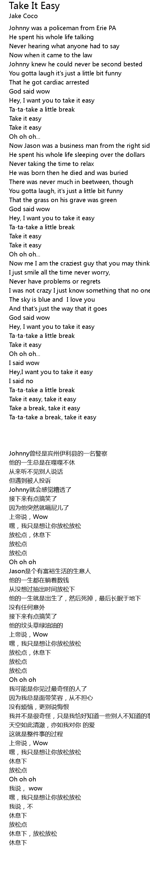 Take it easy, take it easy |