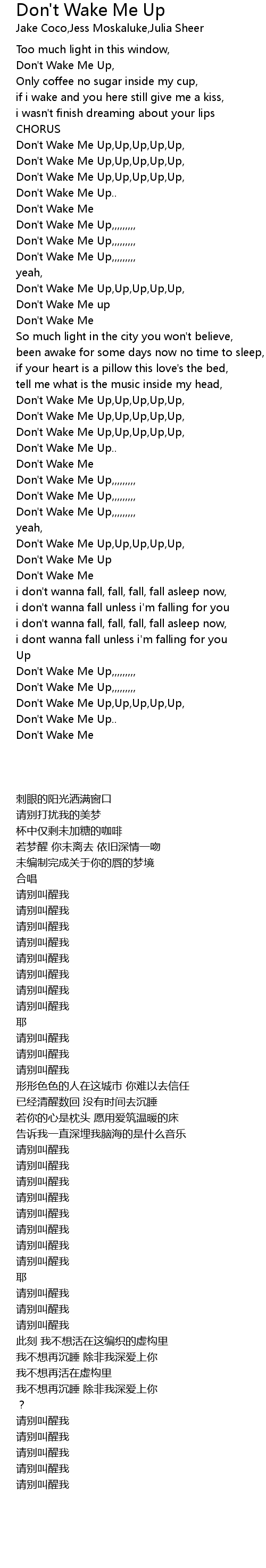 Don't Wake Me Up,Up,Up,Up,Up, |