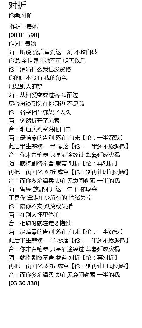 | [01:38.180] | 陌:就将剧终不舍 裁剪 对折【伦:再对折】 |