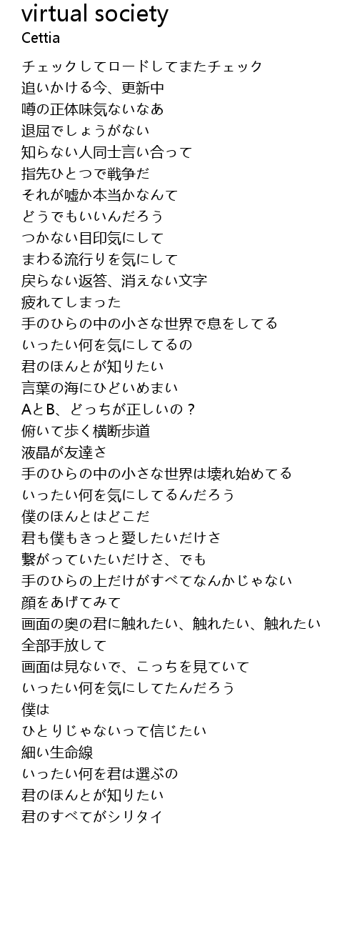 | [02:58.000] | 画面の奥の君に触れたい、触れたい、触れたい |