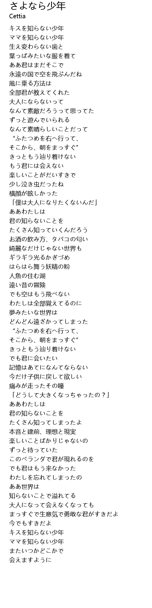 | [01:17.000] | 「僕は大人になりたくないんだ」 |
