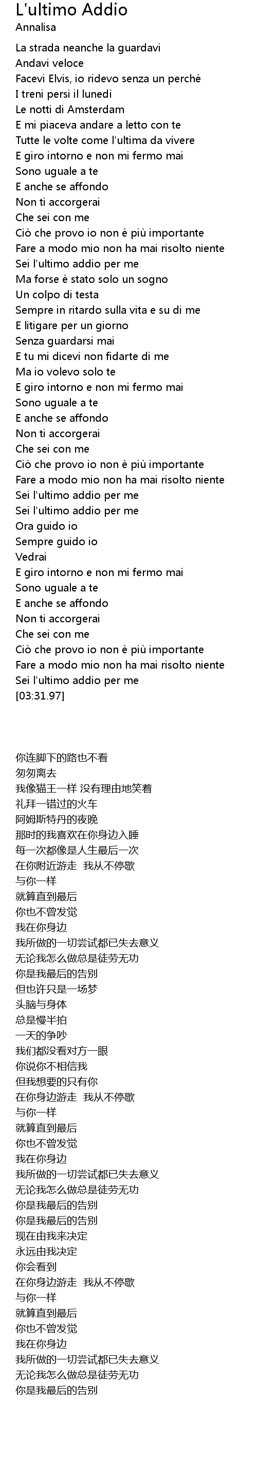 | [03:24.38] | Sei l' ultimo addio per me |