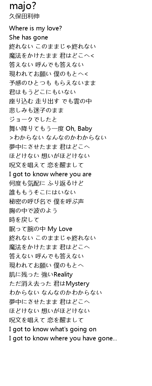 | [00:32.86] | 魔法をかけたまま 君はどこへ< |