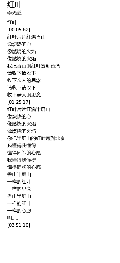 | [00:23.17] | hong ye pian pian hong man xiang shan |