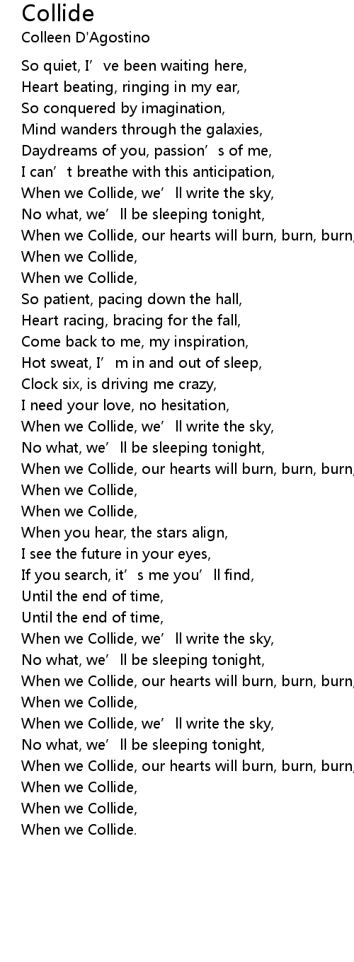 | When we Collide, our hearts will burn, burn, burn, | |