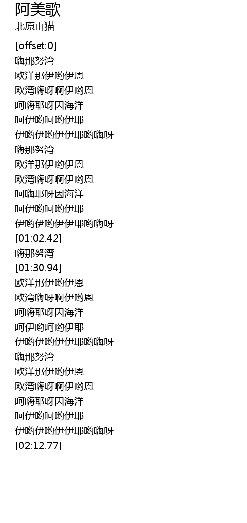 | [02:03.98] | 呵伊哟呵哟伊耶 |
