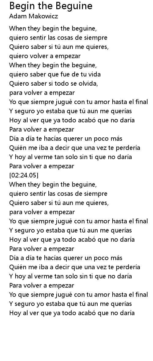 | [02:37.24] | When they begin the beguine, |