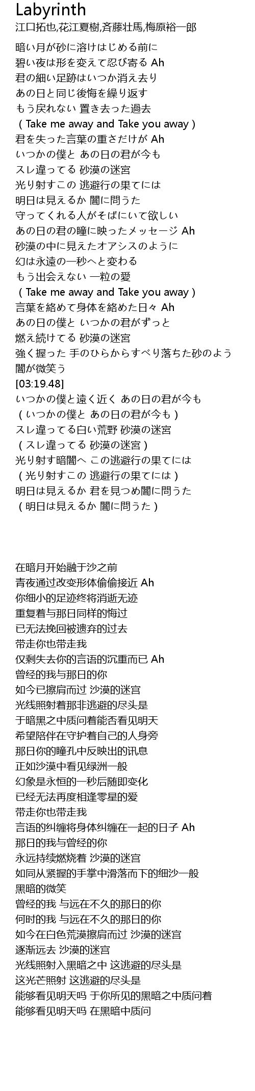 | [01:20.98] | スレ違ってる 砂漠の迷宮 |