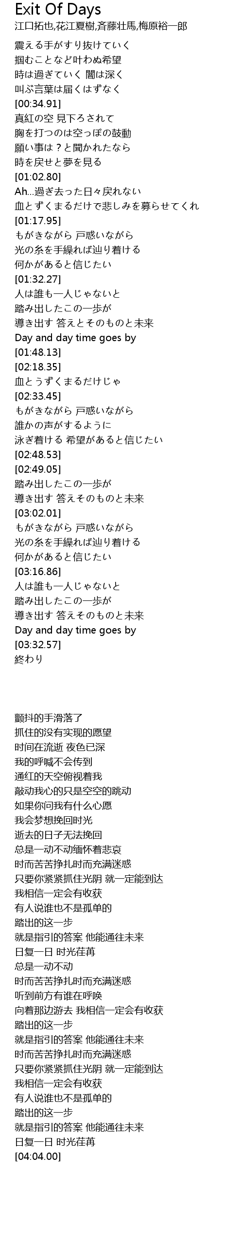 | [01:39.53] | 導き出す 答えとそのものと未来 |