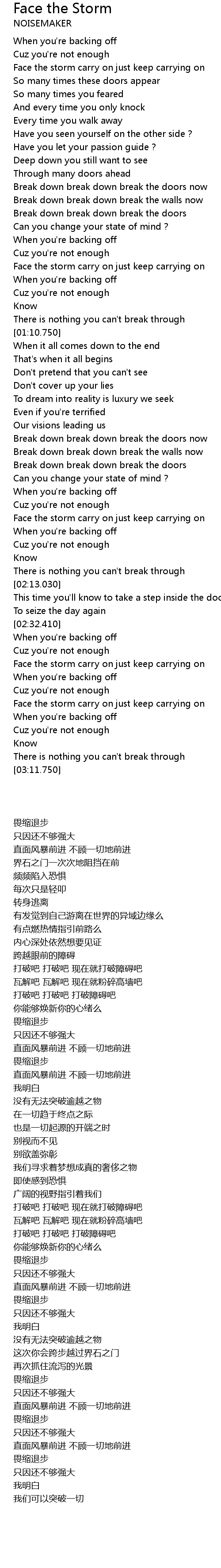 | [02:56.560] | Face the storm carry on just keep carrying on |