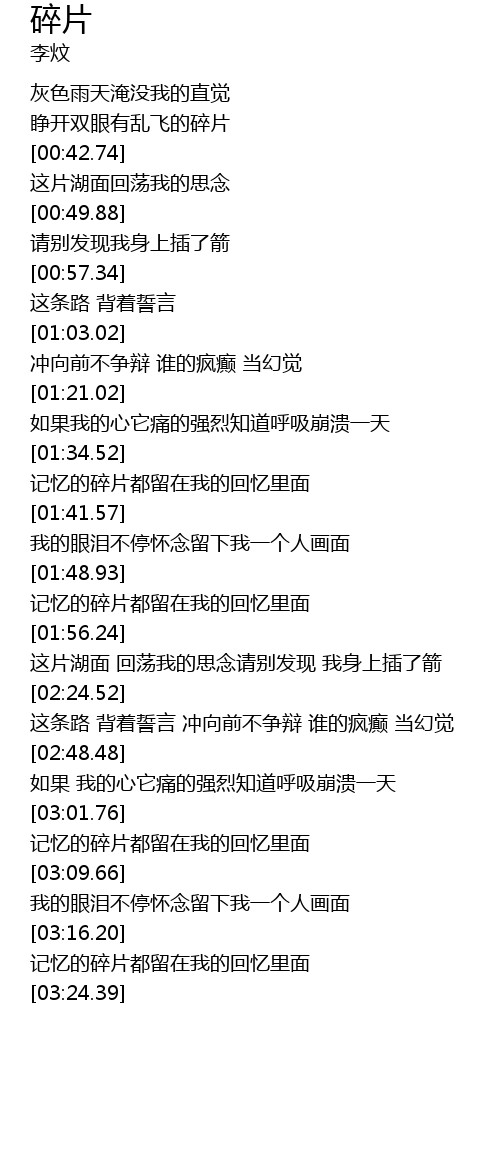| [00:37.61] | 睁开双眼有乱飞的碎片 |
