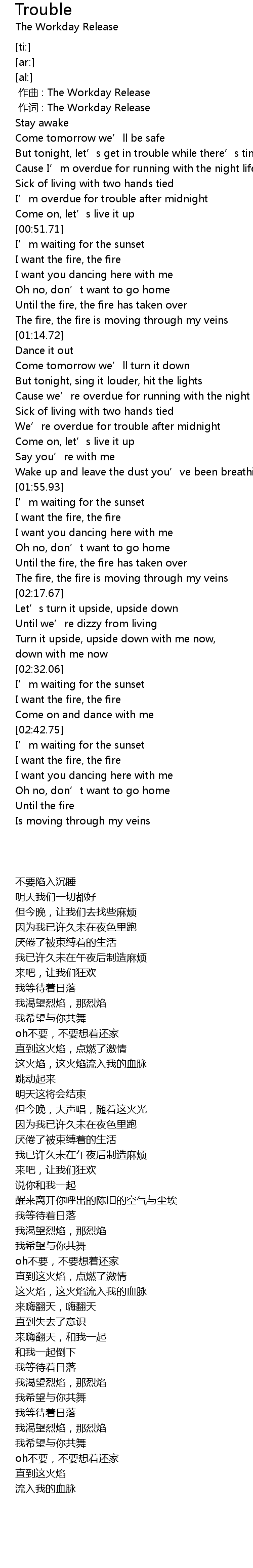 | [00:00.00] | zuò qǔ : The Workday Release |