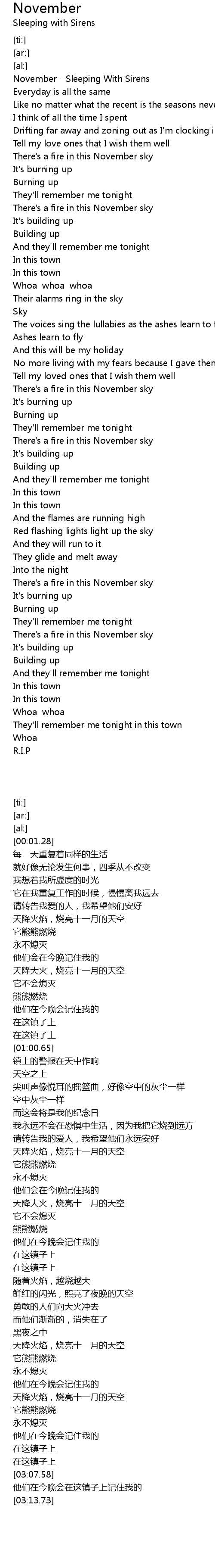 November - Sleeping With Sirens |